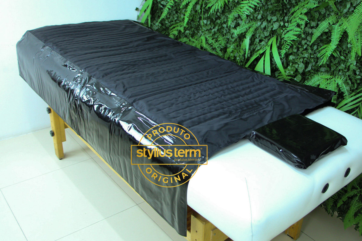 Manta Térmica Saco de Dormir Linha Black 1,65m x 2,00m Bivolt, é ótima para procedimentos corporais, pois, abrange boa parte do corpo, cobrindo quase que sua totalidade, simulando uma sauna, potencializando os benefícios da termoterapia, possuí emissores de infravermelho longo, os mesmos encontrados em colchões para casa, com inúmeros benefícios à saúde, entre eles melhora na circulação, e auxílio na redução do aspecto casca de laranja na região dos glúteos (Celulite), auxílio incrível e confortável na massagem modeladora e linfática.