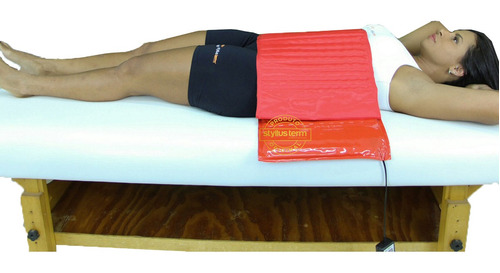 Manta Térmica Slim Vermelha com fita para fixar colavelcro Bivolt, é ótima para procedimentos corporais localizados, possuí emissores de infravermelho longo, os mesmos encontrados em colchões para casa, com inúmeros benefícios à saúde, entre eles melhora na circulação, e auxílio na redução do aspecto casca de laranja na região dos glúteos (Celulite), auxílio incrível e confortável na massagem modeladora e linfática.
